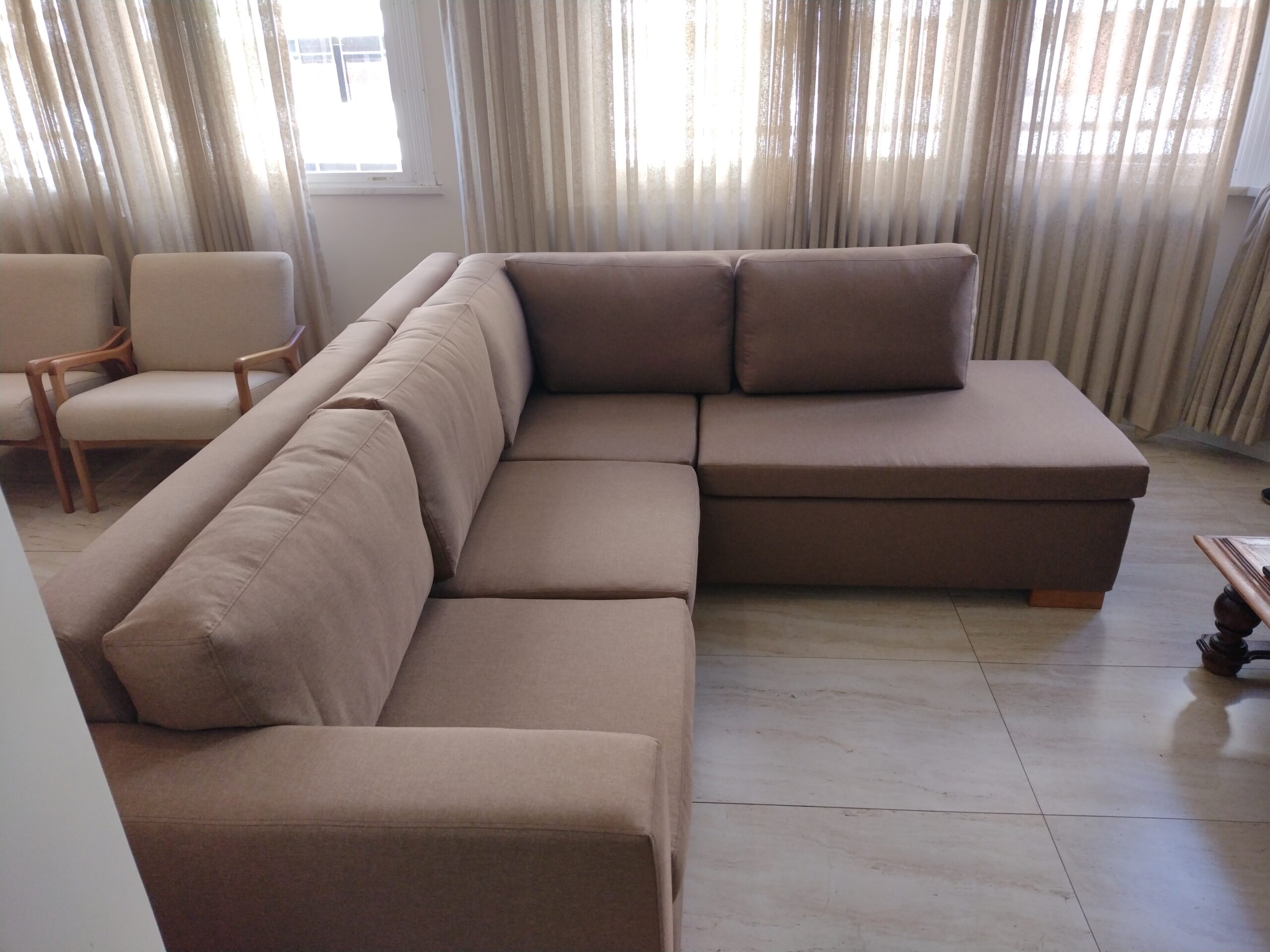 Nossa prioridade é garantir a qualidade superior do sofá. Utilizamos materiais de primeira linha na sua fabricação, selecionando cuidadosamente cada componente para assegurar durabilidade e resistência. O estofamento é feito com tecidos de alta qualidade, escolhidos tanto pela sua estética deslumbrante quanto pela sua resistência ao desgaste diário.